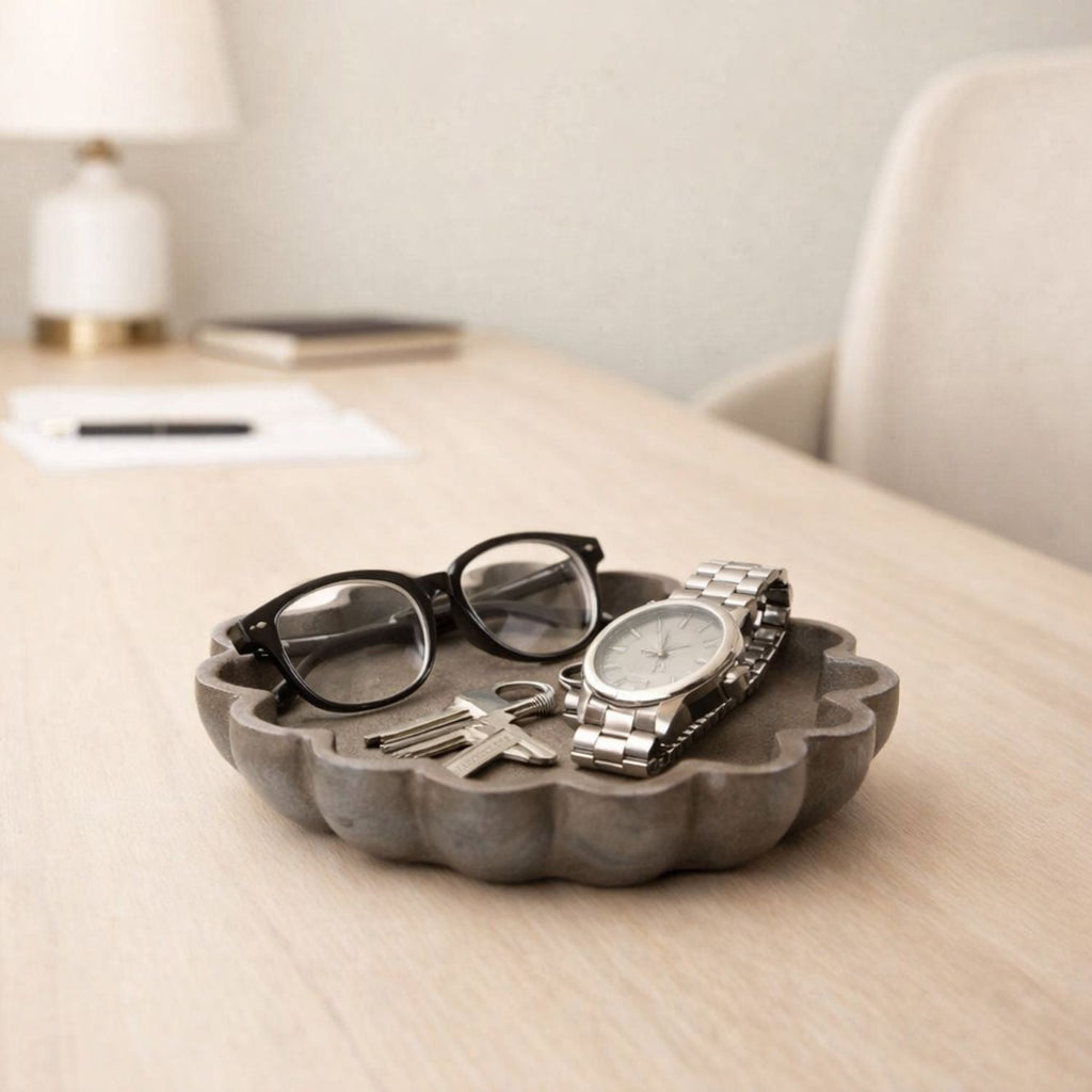 Utility & Functionality - Despite its artistic shape, the tray is highly functional. The raised scalloped walls keep items contained, while the large surface area is perfectly sized for: - Centering a large coffee table vignette. - Serving a round of drinks or appetizers. - Organizing perfumes or jewelry on a dressing table.