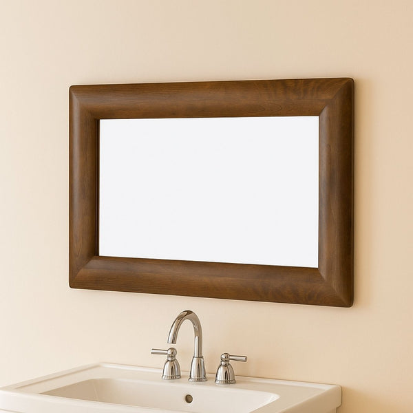 🌿Design - Featuring a clean rectangular silhouette with a wide wooden frame, the mirror embodies minimalism with a touch of rustic elegance. The natural wood finish highlights the grain patterns, adding warmth and charm to both modern and traditional interiors.
