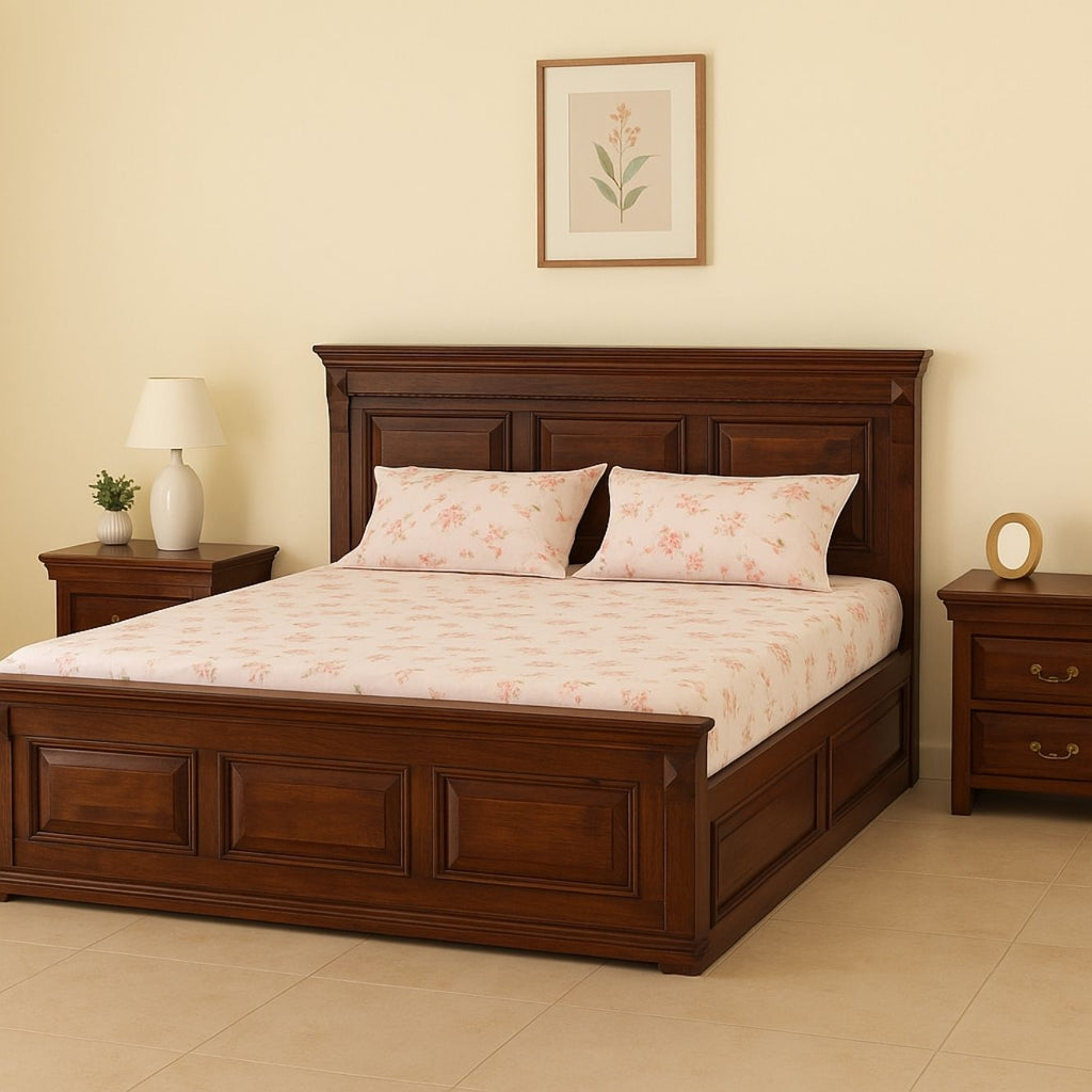 The Heritage Royal Sheesham Wood Lift-Top Storage Bed is a magnificent piece that defines a bedroom with its stately design and unparalleled functionality. Crafted entirely from premium Solid Sheesham Wood (Indian Rosewood), this bed features traditional paneling and molding, complemented by a brilliant hidden lift-top storage system and integrated drawers. It’s a true heirloom piece designed to maximize both elegance and utility.